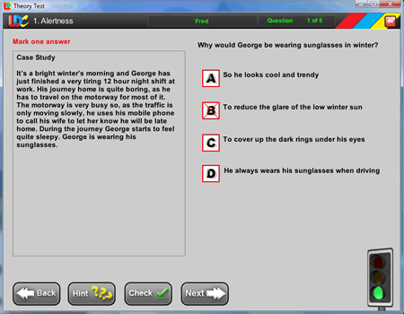 - Interactive tutorial that tells you all about the Theory Test with professional voice over.
